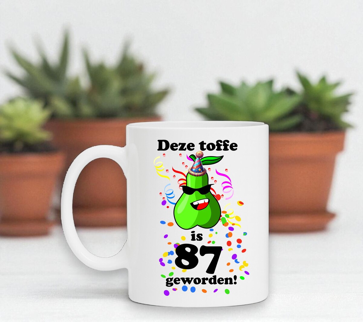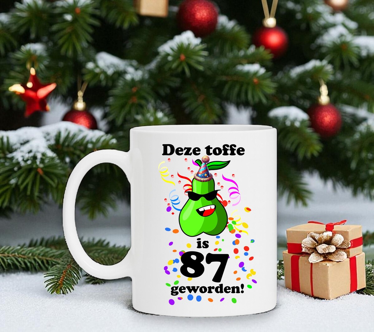 Deze mok is een leuk verjaardagscadeau voor een toffe peer van 87 jaar.