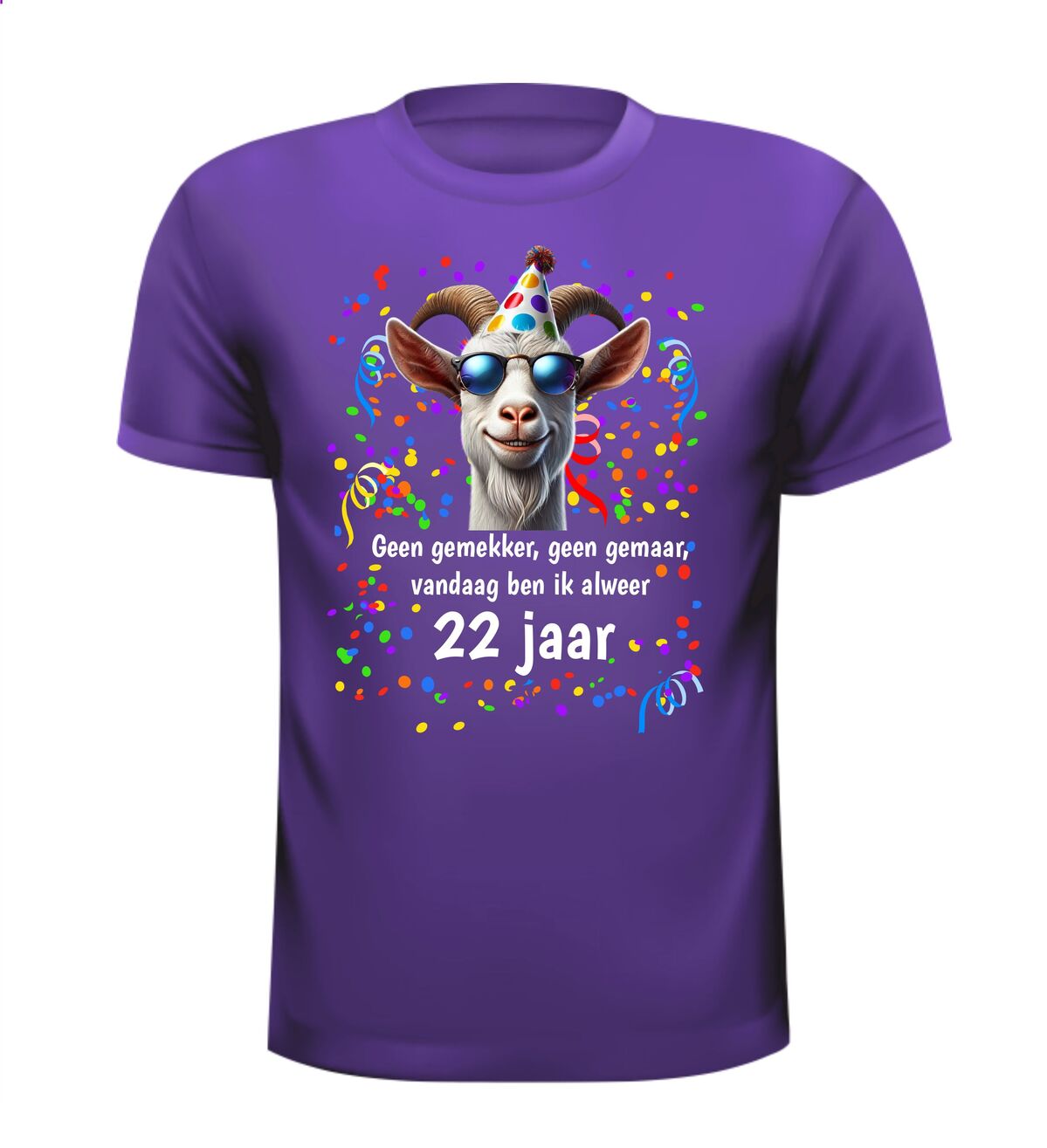 Dit mooie full colour shirt met orginele tekst is erg leuk om een 22e jarige mee te verrassen. Zo staat hij of zij nog meer in het middelpunt van de belangstelling op de verjaardag. Wanneer je op zoek bent na een andere leeftijd. Kijk gerust eens verder in onze online feestwinkel.