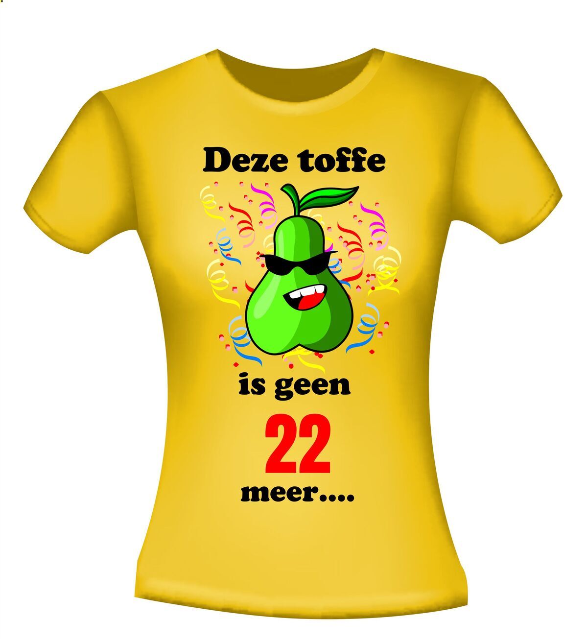 Op zoek na een leuk fun shirt voor een 23e verjaardag. Dit shirt met de tekst: deze toffe peer is geen 22 meer is erg leuk om kado te geven maar ook om te krijgen wanneer iemand 23 jaar wordt.