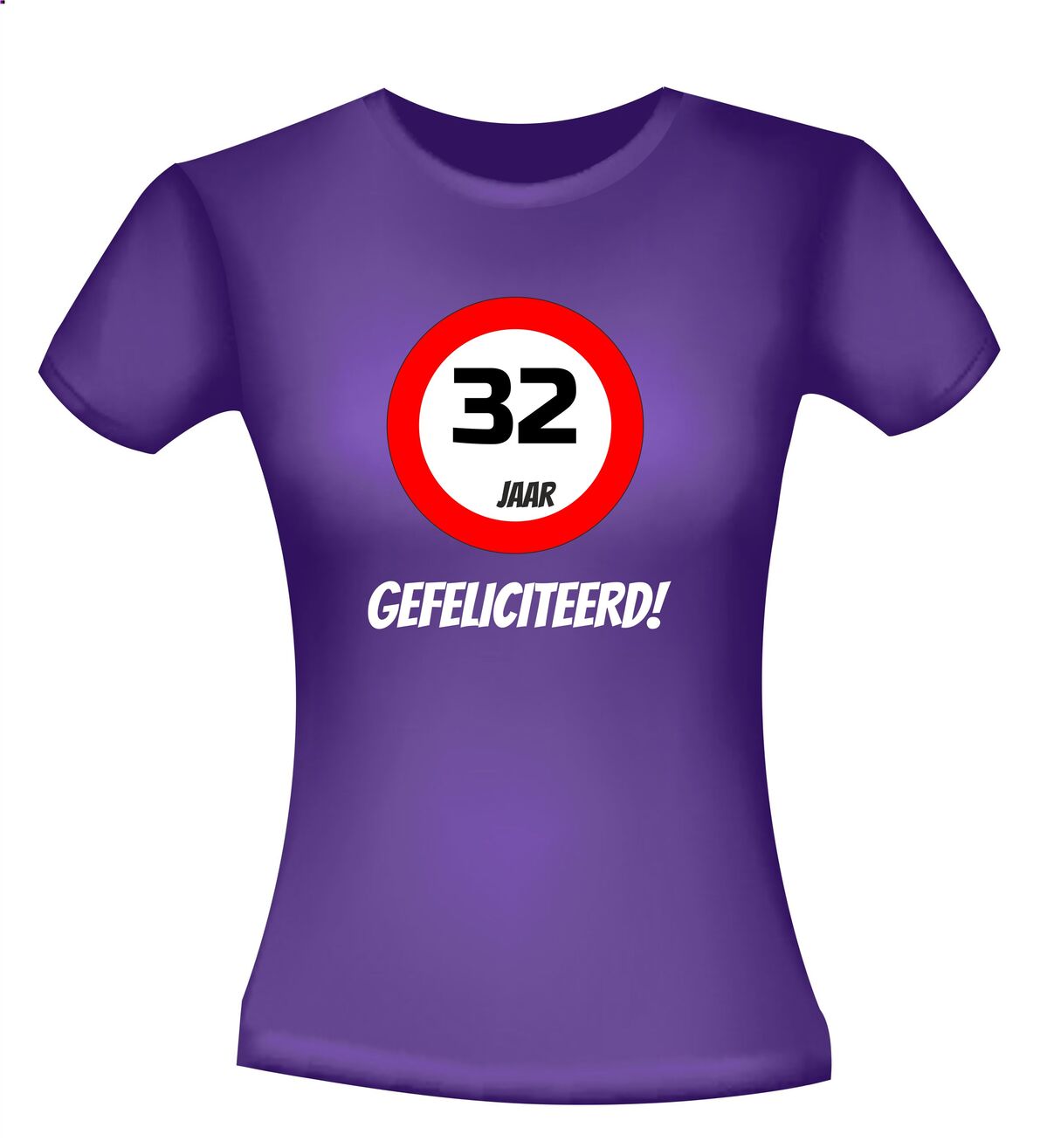 Elke leeftijd is een unieke mijlpaal en ook als je 32 jaar wordt. Laat dit niet zomaar voorbij gaan geef de jarige een leuk verjaardags T-shirt met de opdruk van een verbodsbord met hem of haar leeftijd erin vermeld.