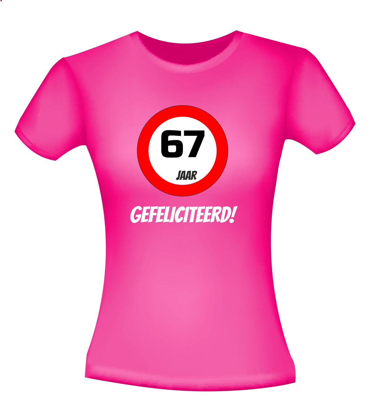 De leeftijd van 67 jaar bereiken is hele mijlpaal en mag je zeker niet zomaar ongemerkt voorbij laten gaan. Heb jij een verjaardag van een geliefde die maar liefst 67 jaar wordt. Geef hem of haar dan dit gekke verjaardags T-shirt met een verkeersbord met de leeftijd erop.