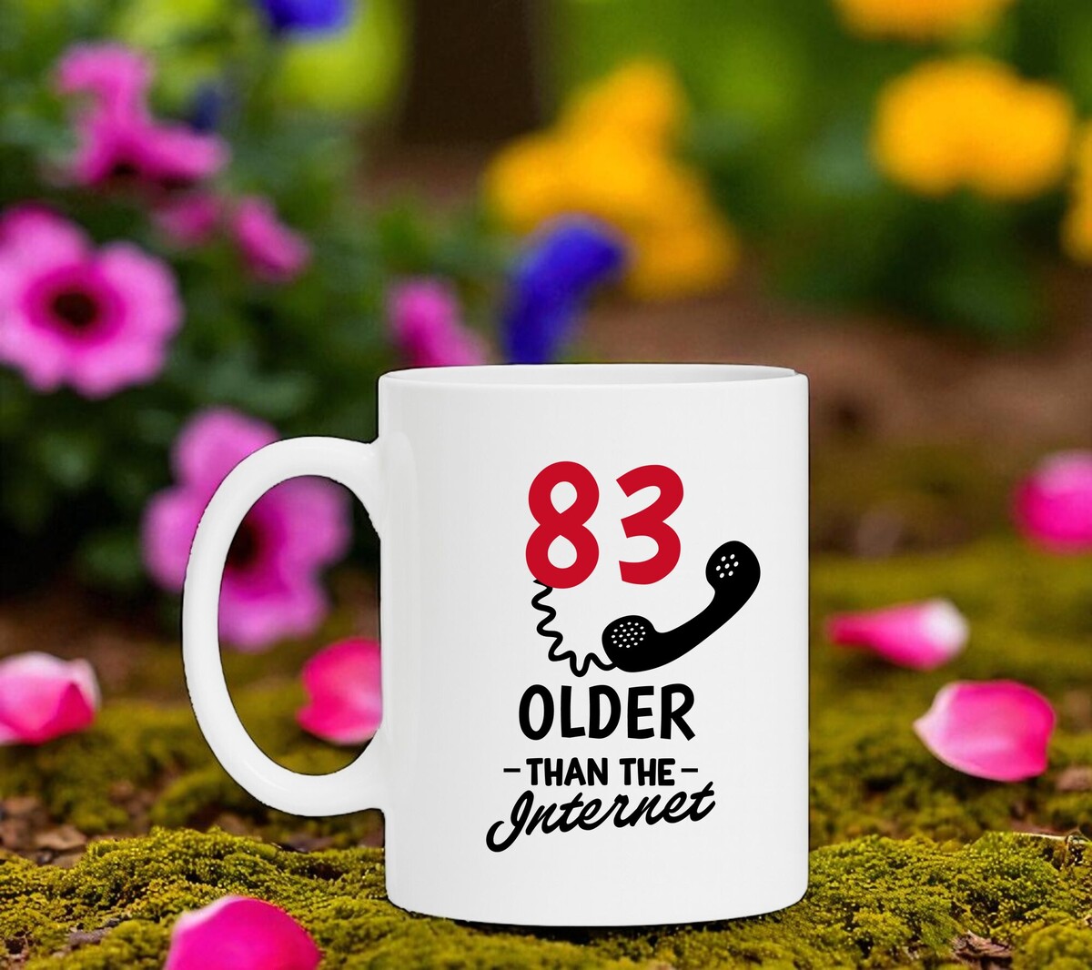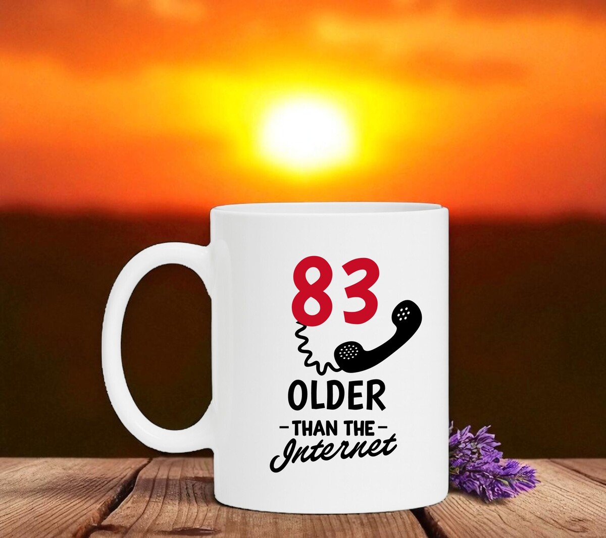 Een mooie leeftijs mok voor hem of haar die 83 jaar wordt en ouder is dan het internet! De witte koffie of thee mok is vaatwasserbestendig en magnetronbestendig. De mok heeft een hoogte van 96mm en een diameter van 80mm.