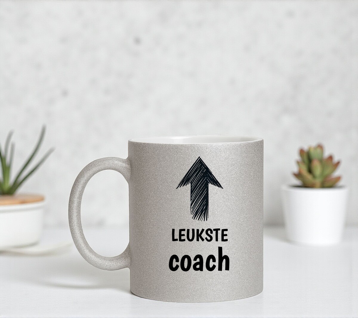 Op zoek naar het perfecte cadeau voor die ene speciale coach die altijd het beste in je naar boven haalt? Onze zilveren glitter mok is dé manier om je waardering te tonen. Deze mok is niet alleen praktisch, maar ook een sprankelend eerbetoon aan de leukste coach die je kent! Laat je coach weten hoe bijzonder ze zijn met deze prachtige zilveren glitter mok. Bestel nu en geef een cadeau dat zowel praktisch als inspirerend is.