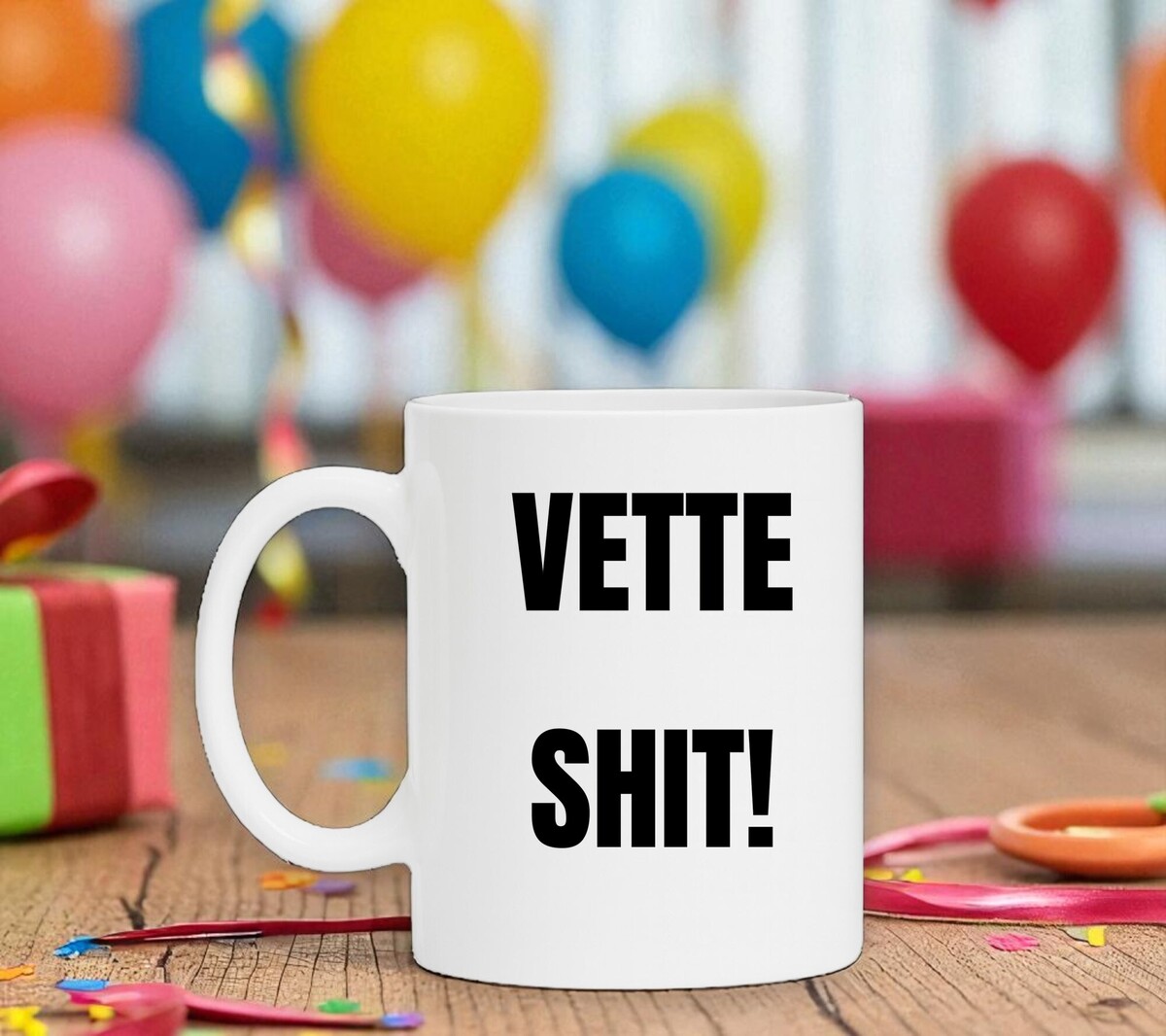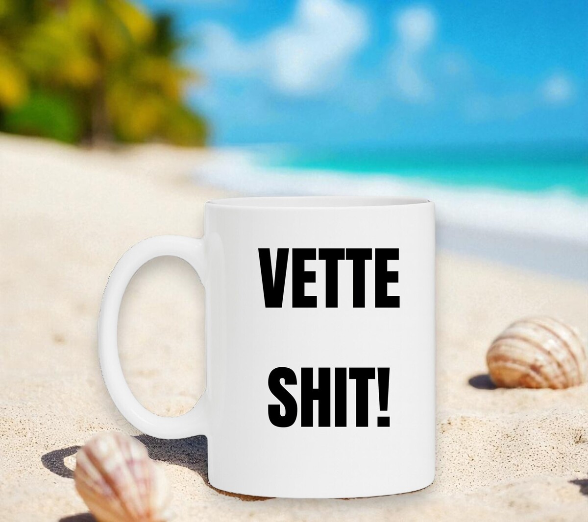 Een koffiemok met de tekst in koeienletters : Vette shit!