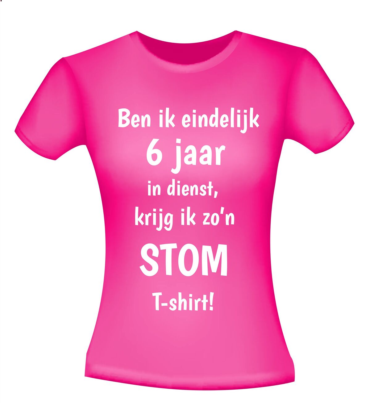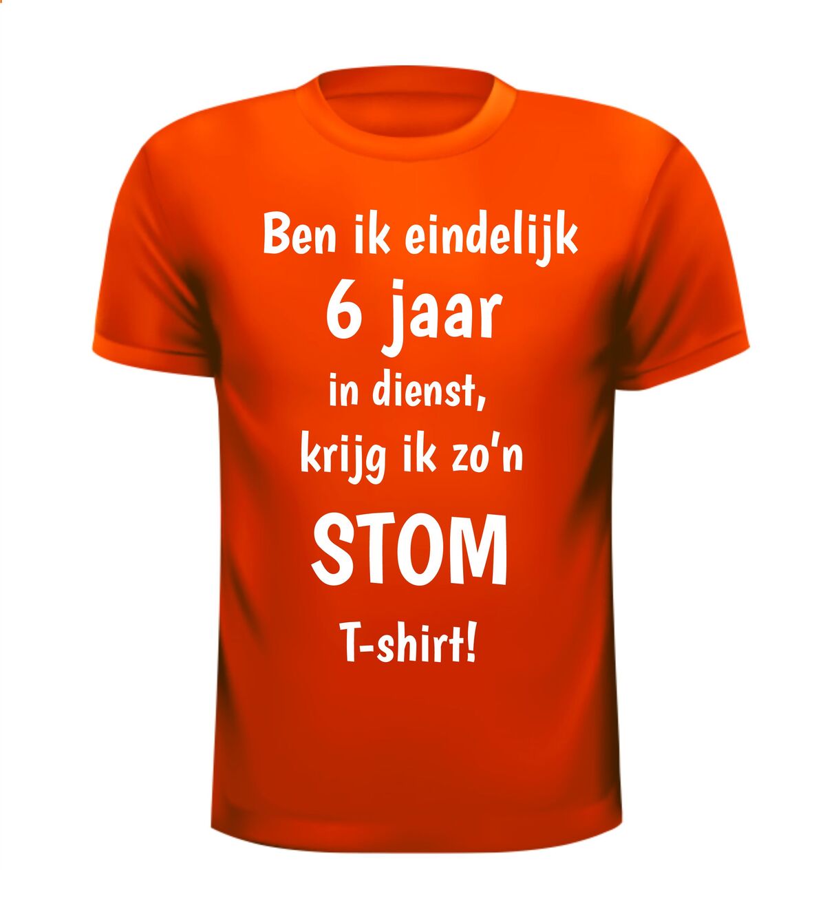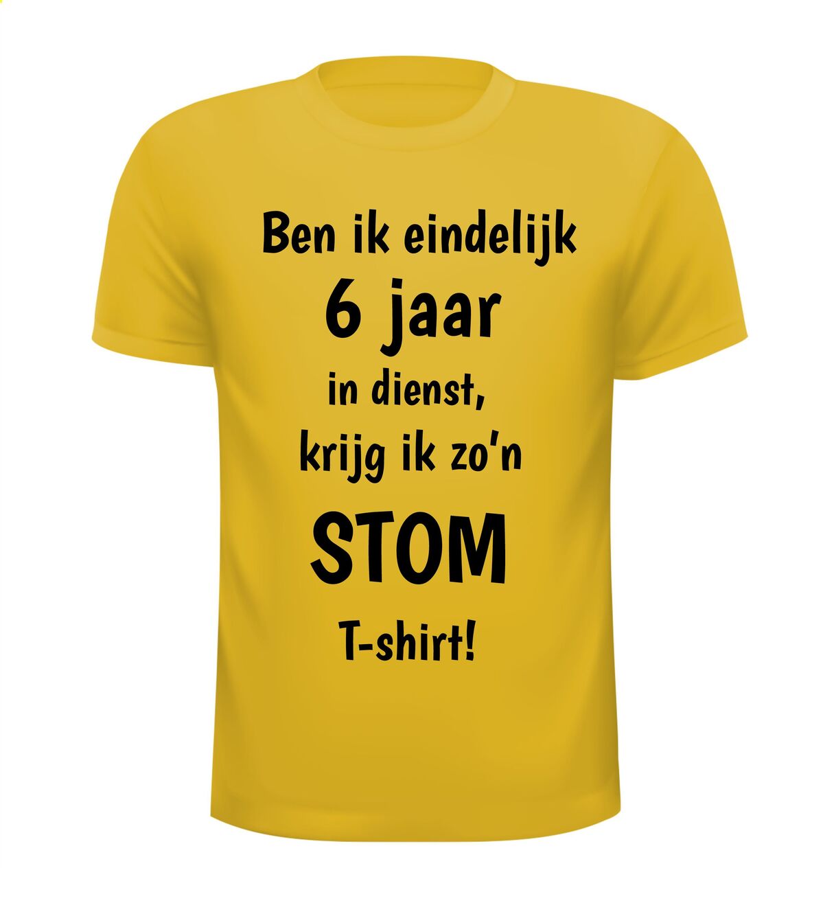 Ben je eindelijk 6 jaar in dienst, heb je alles gegeven, ben je door alle hectiek, deadlines, meetings-die-een-mail-hadden-kunnen-zijn en last-minute klusjes heen gekomen… en dan krijg je als beloning dit shirt. Ja, écht. Dit prachtige, hilarisch eerlijke, licht sarcastische T-shirt dat precies zegt wat jij eigenlijk niet hardop mag zeggen op de werkvloer.