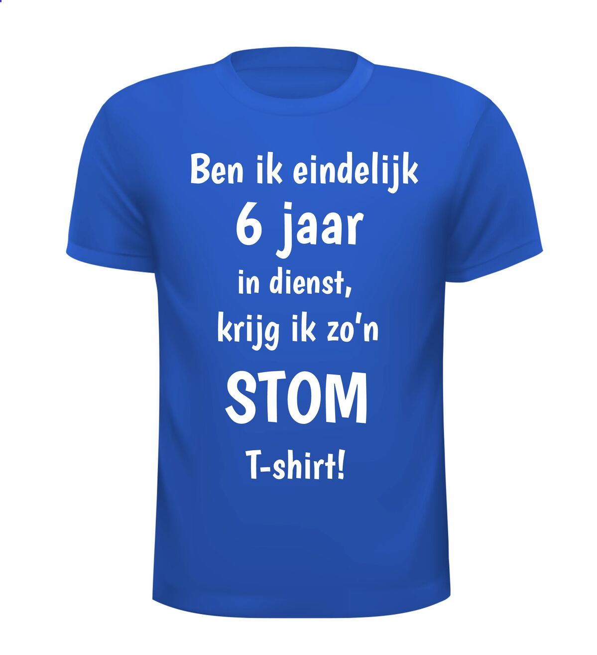 Geef jezelf of een collega een glimlach (en misschien een beetje erkenning) cadeau. Want hé: na zes jaar heb je wel íets speciaals verdiend ,al is het maar dit hilarisch stomme shirt.