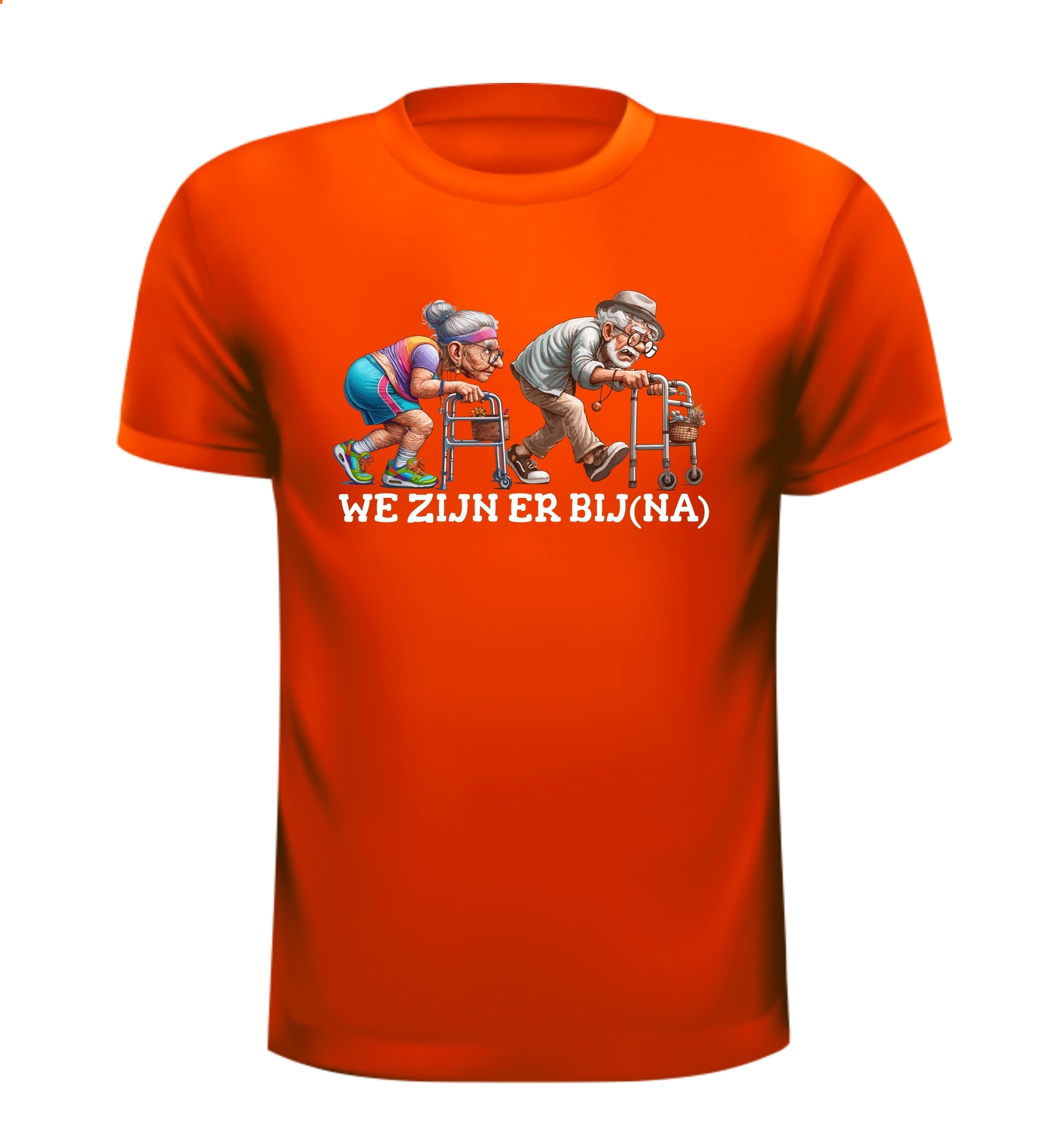 Bestel nu je "We zijn er bij(na)" T-shirt en maak van de Vierdaagse een onvergetelijke ervaring. Of je nu zelf loopt of anderen aanmoedigt, dit T-shirt zorgt voor de perfecte mix van stijl, comfort en een flinke dosis Vierdaagse-plezier!