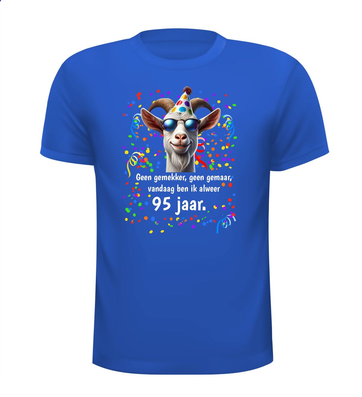 95 jaar is niet zomaar een leeftijd. Dit is echt een leeftijd om zeker niet de 95e verjaardag voorbij te laten gaan. Met dit shirt kan iedereen zien wat voor geweldige leeftijd de jarige heeft bereikt.