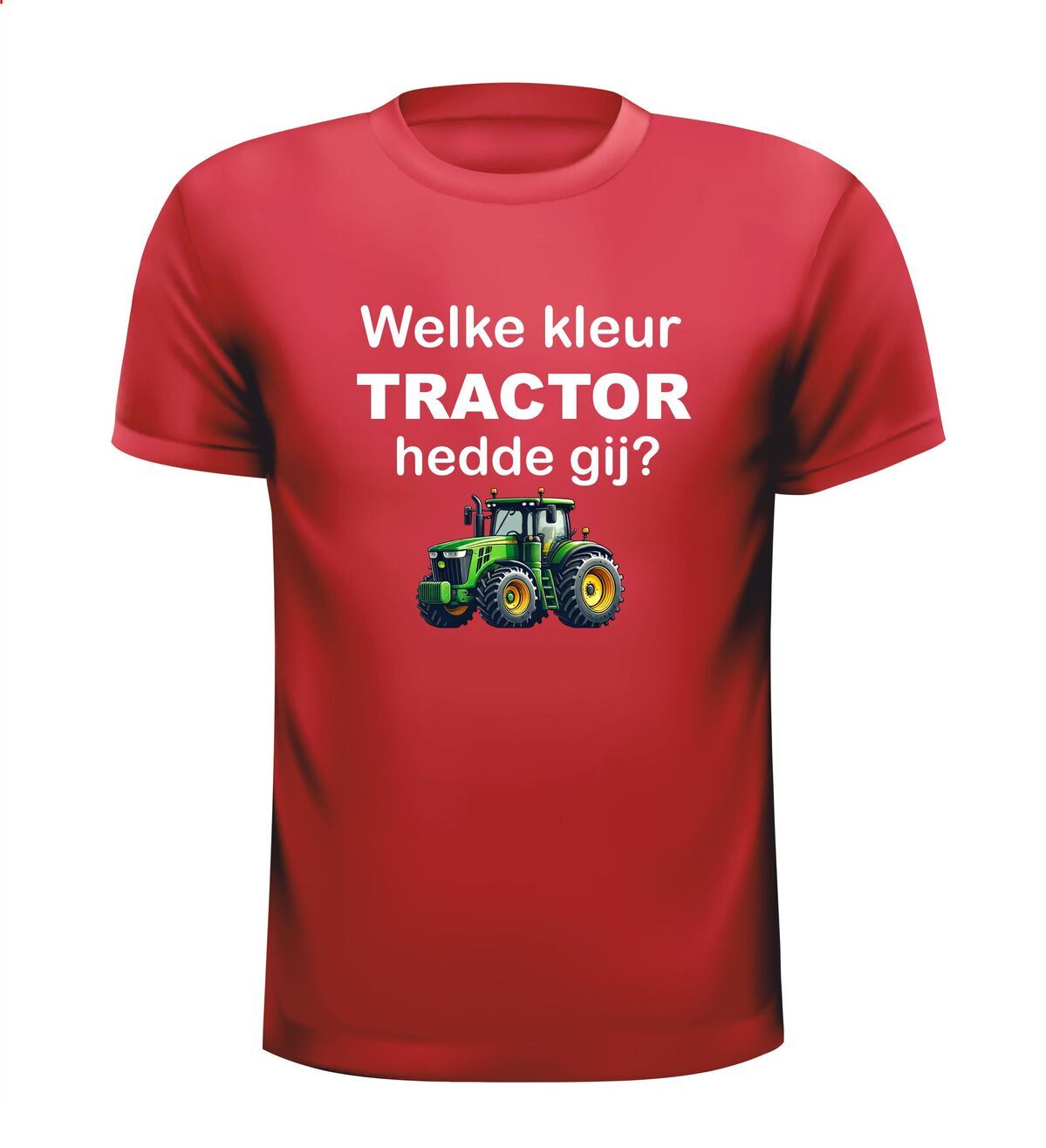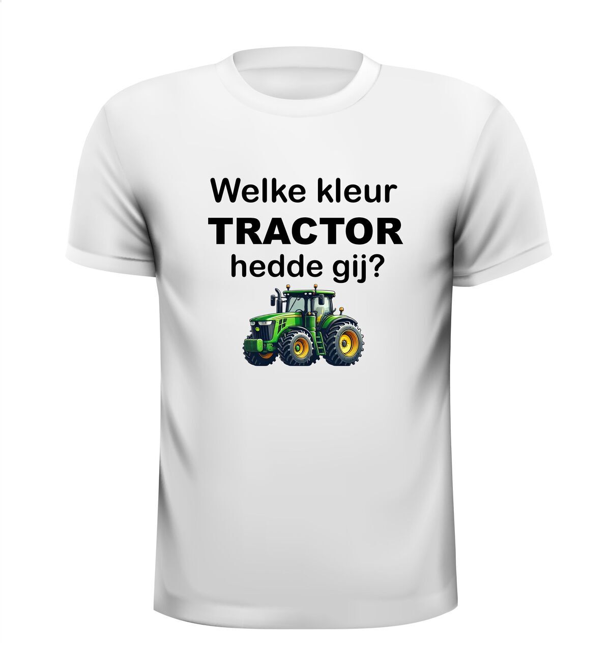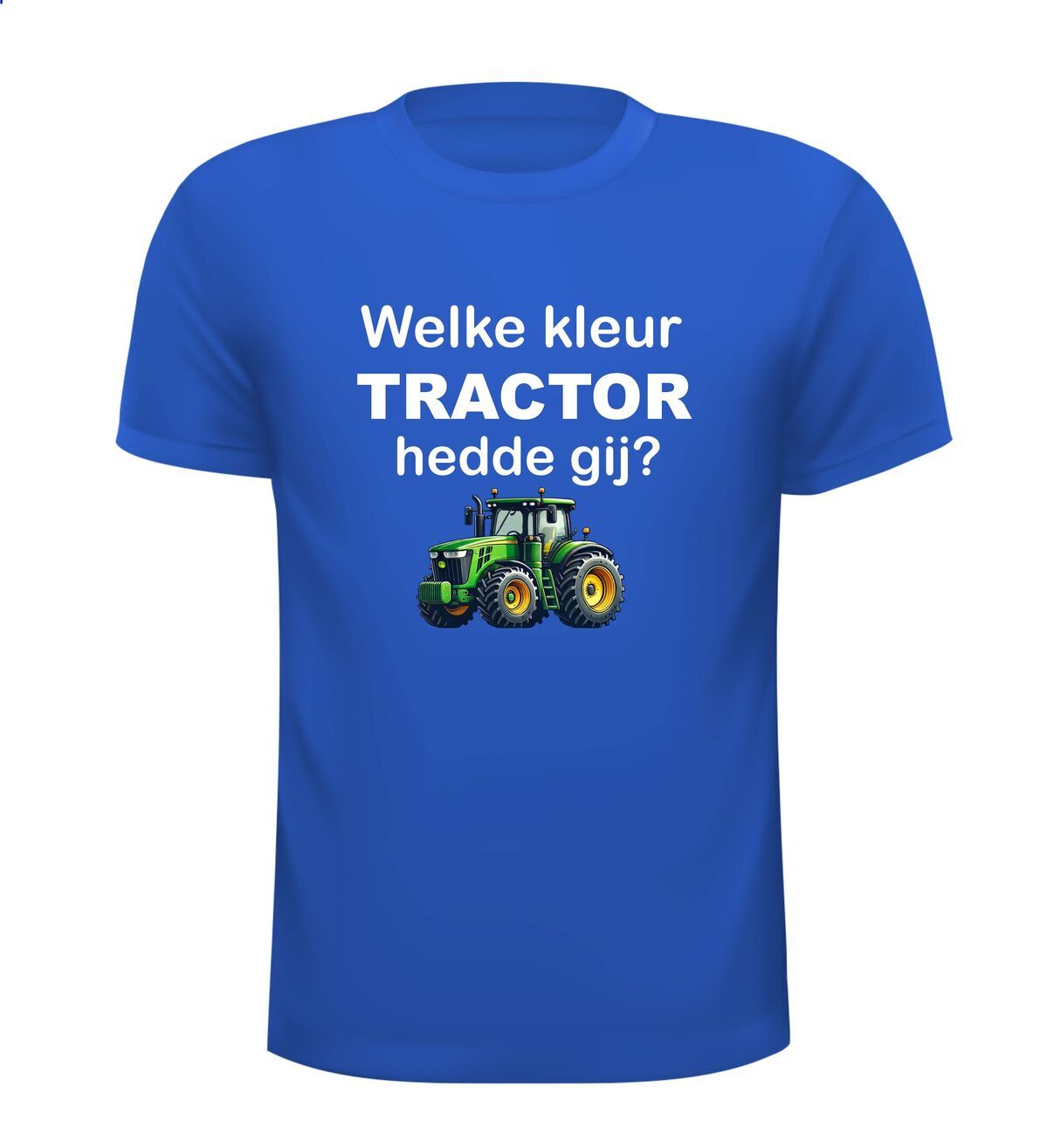 T-shirt met de tekst : welke kleur tractor hedde gij? Dit t-shirt is uitermate geschikt om te dragen tijdens de zwarte cross, Het is de beste openingszin allertijden voor op de zwarte cross ......