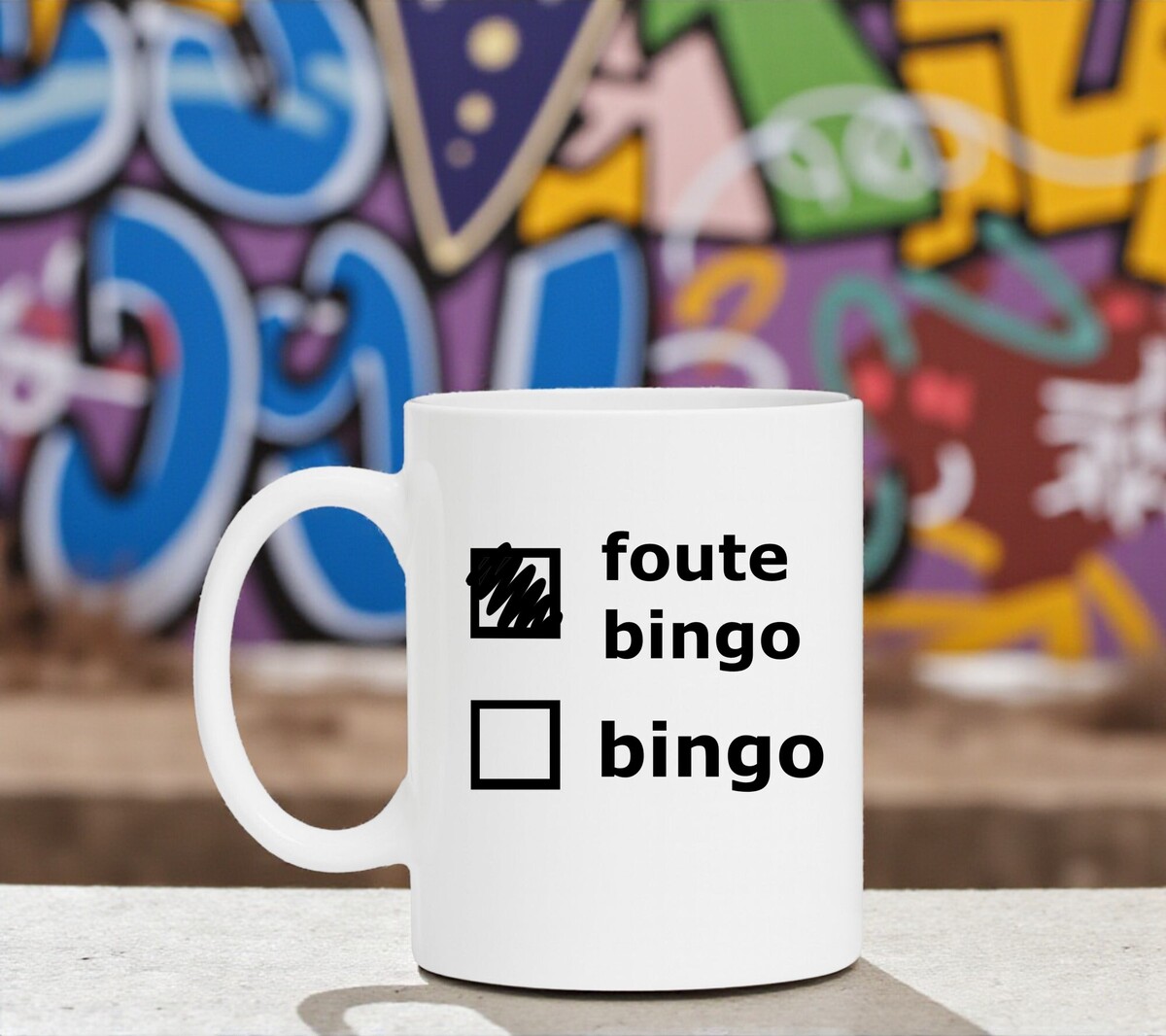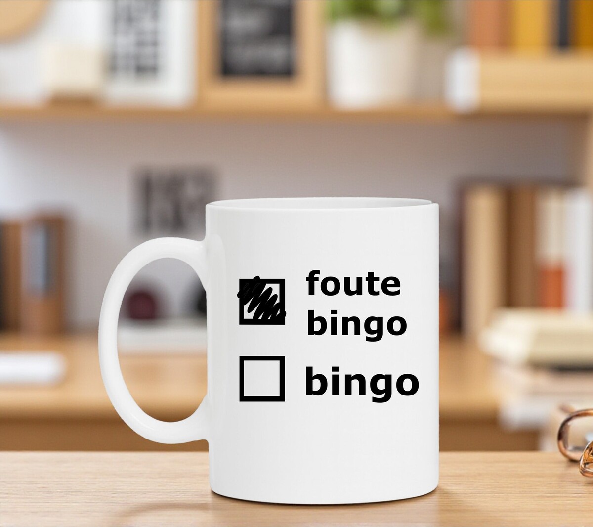 Kortom: een simpele witte mok met grote persoonlijkheid – klaar om elke bingo-avond net wat fouter te maken.