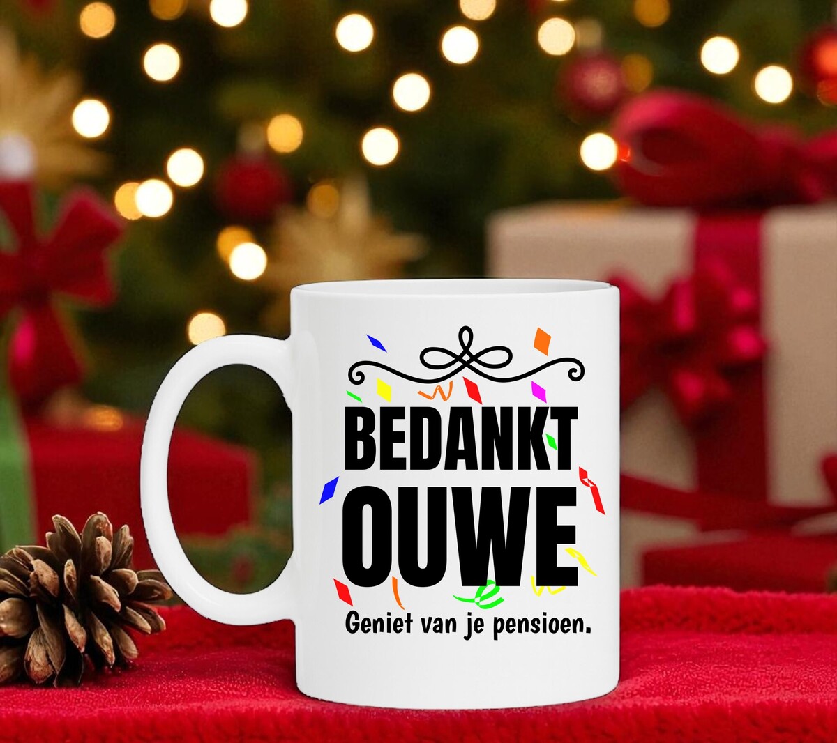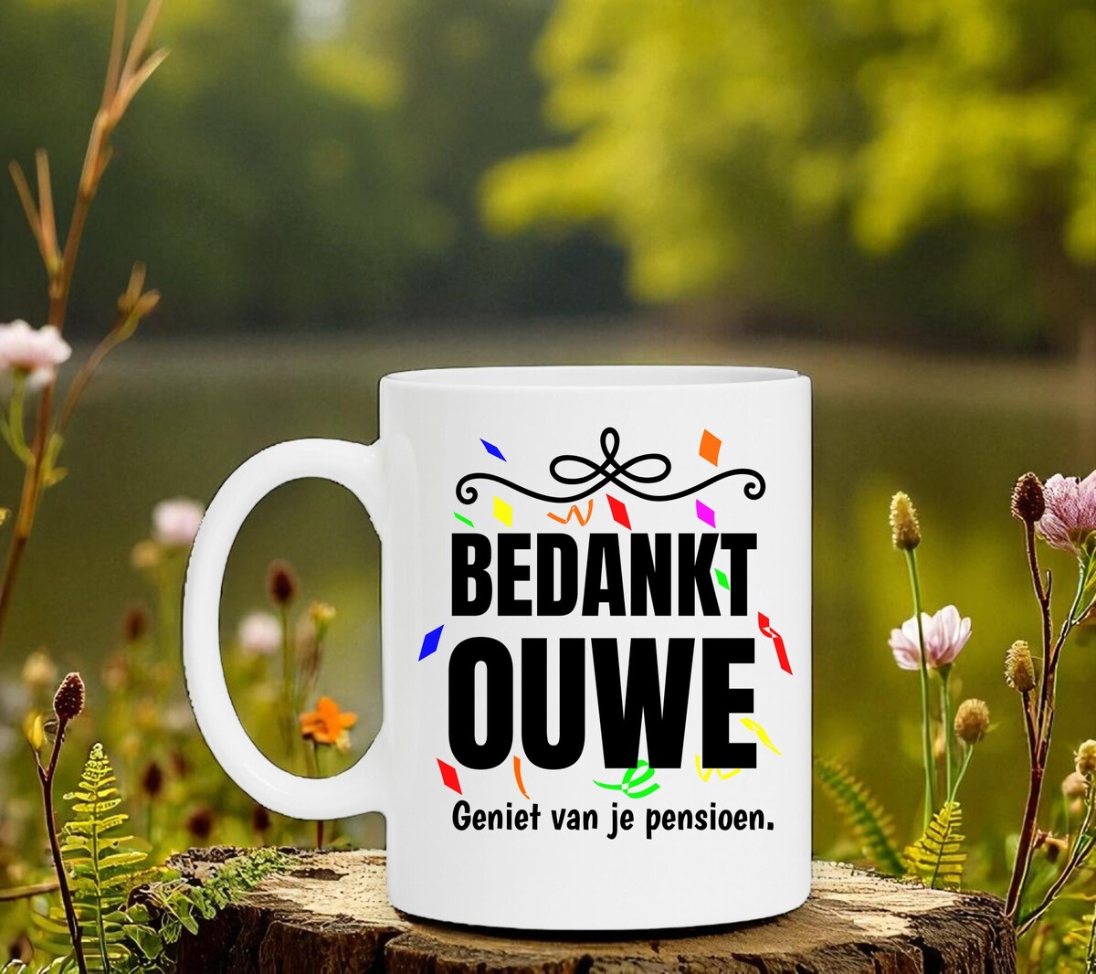 Een feestelijk cadeau voor hem of haar die met pensioen gaat. Op de witte koffie of thee mok staat de opdruk 'Bedankt ouwe. Geniet van je pensioen.'. De mok is vaatwasserbestendig, microgolfbestendig en heeft een hoogte van 96mm en een diameter van 80mm.