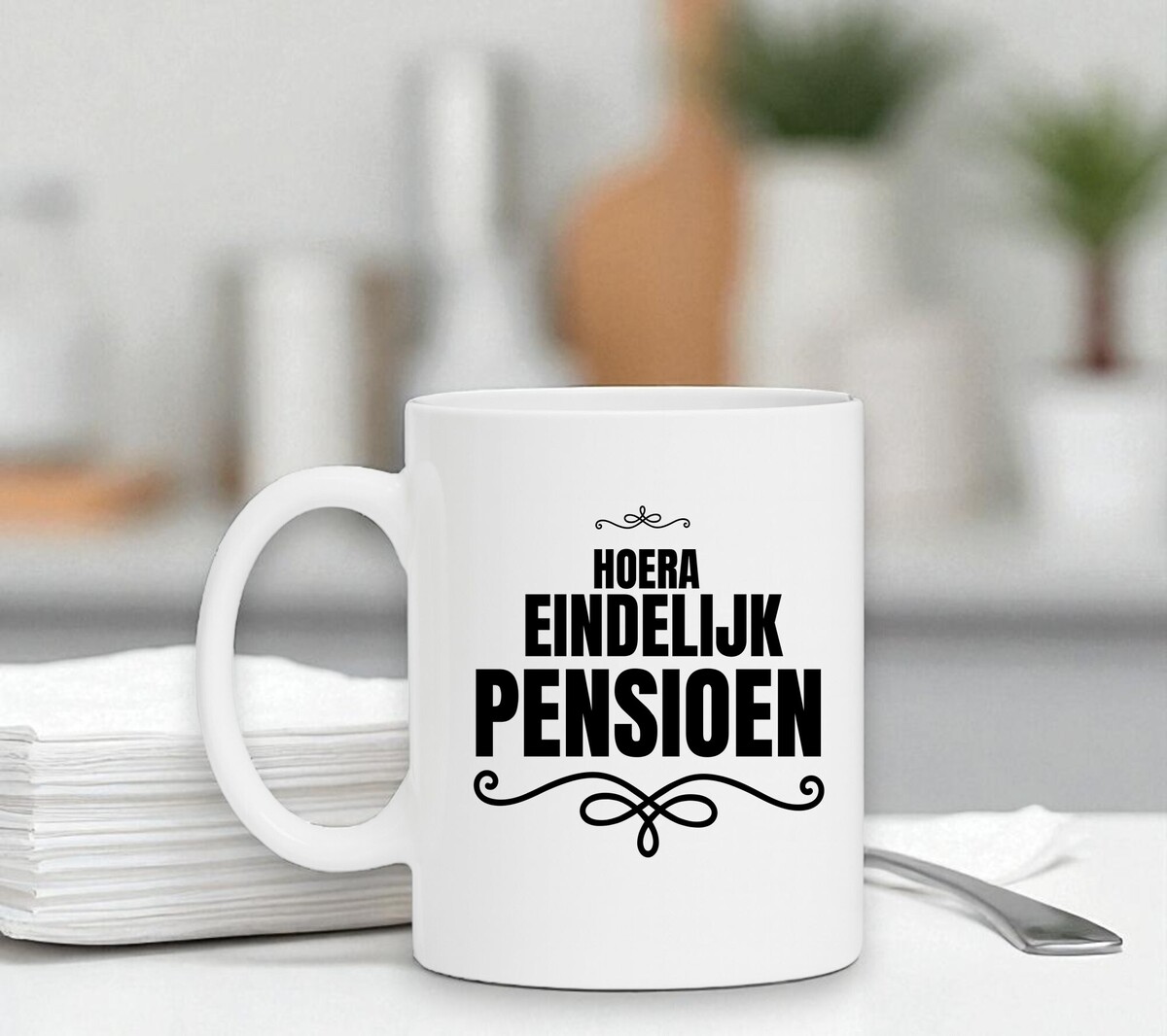 Een superleuk kadootje voor je collega of werknemer die met pensioen gaat. De mok is vaatwasserbestendig, microgolfbestendig en heeft een hoogte van 96mm en een diameter van 80mm.