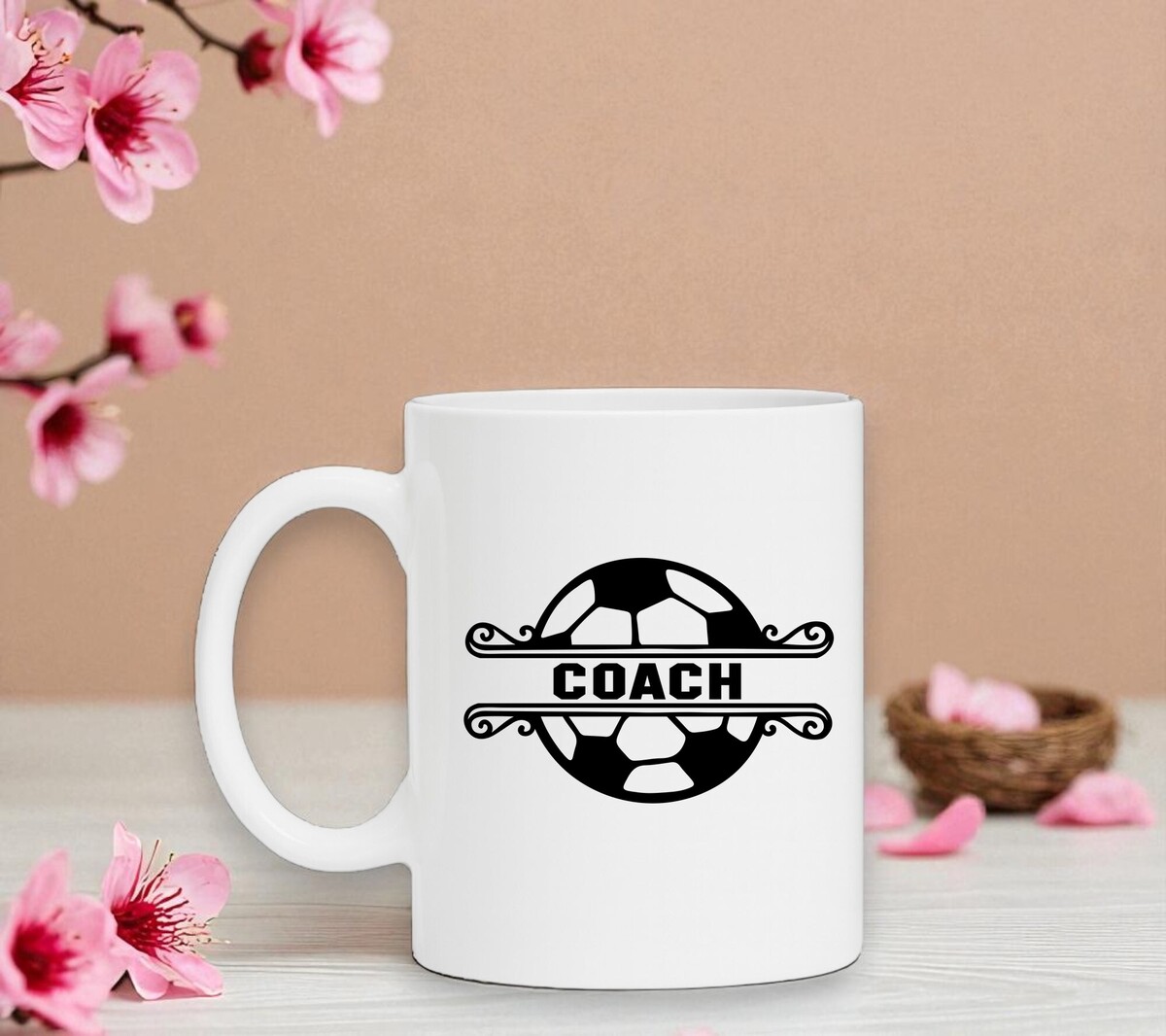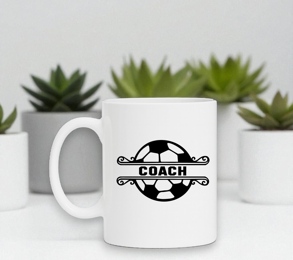 Witte koffiemok voor een voetbal coach! De mok is vaatwasserbestendig, microgolfbestendi en heeft een hoogte van 96mm en een diameter van 80mm.
