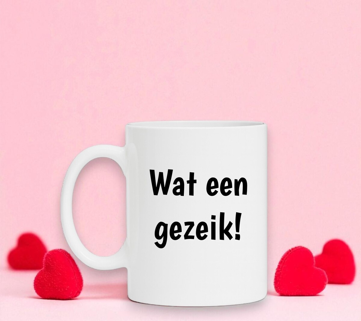 Witte koffie / thee mok met de opdruk wat een gezeik! De mok is magnetron en vaatwasserbestendig en de witte mok heeft een hoogte van 96mm en een diameter van 80mm.