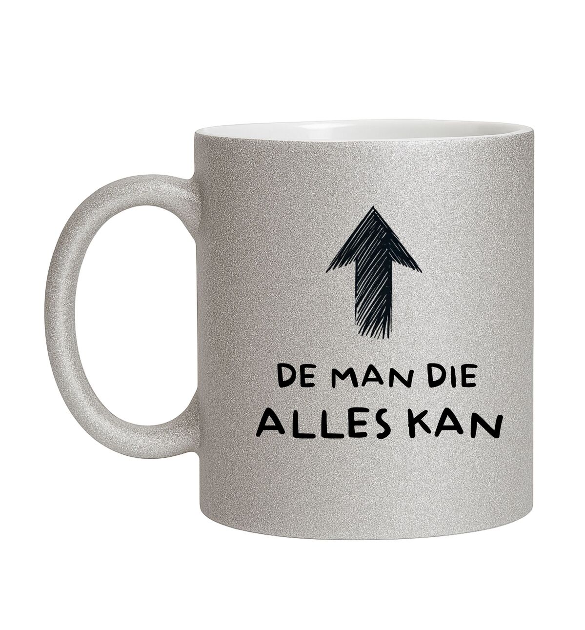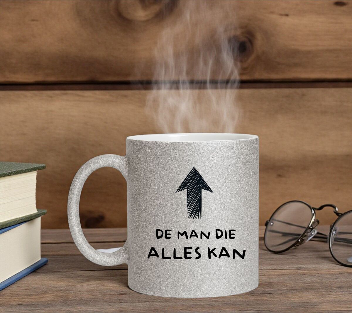 Voor die ene man die altijd paraat staat, elke klus klaart, en met gemak elke uitdaging aankan, is deze zilveren glitter mok hét cadeau om hem in het zonnetje te zetten. Met de inspirerende tekst “Voor de Man die Alles Kan” in glinsterende zilveren letters, is deze mok een dagelijkse herinnering aan hoe bijzonder hij is. Deze stijlvolle, sprankelende mok zegt in één oogopslag: “Jij bent onmisbaar!”