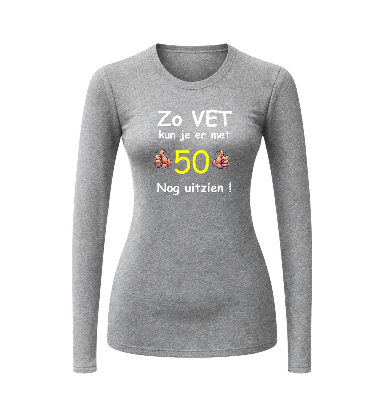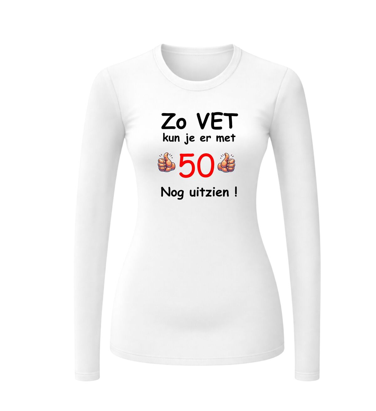 Dit leuke en orginele verjaadag shirt voor iemand die vijftig jaar oud wordt is erg leuk en orgineel om te geven en te krijgen tijdens een 50e verjaardag. Op dit leeftijd shirt staat de tekst: Zo vet kun je er met 50 nog uitzien.